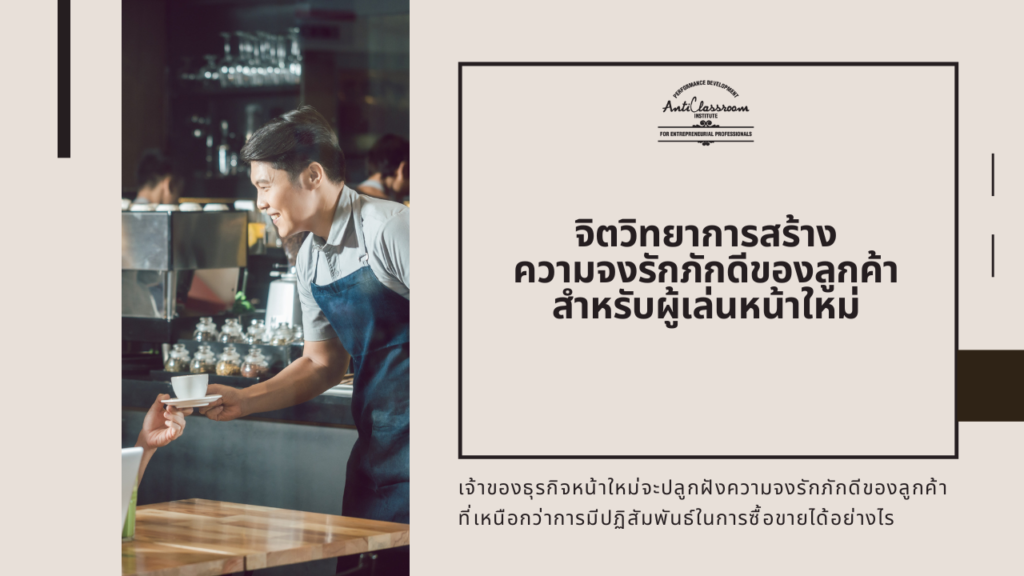 การสร้างความจงรักภักดีของลูกค้าเป็นความพยายามที่ต้องใส่ใจในรายละเอียด ซึ่งต้องอาศัยการทำความเข้าใจอย่างลึกซึ้งผ่านปัจจัยทางจิตวิทยาต่าง ๆ ที่ขับเคลื่อนพฤติกรรมของมนุษย์ ที่ AntiClassroom เราสามารถช่วยให้คุณเป็นผู้นำธุรกิจที่มีความเชี่ยวชาญด้านจิตวิทยาได้ด้วยหลักสูตรการอบรมที่เขียนจากนักจิตวิทยาองค์กรที่มีประสบการณ์ในการพัฒนาธุรกิจและทรัพยากรมนุษย์มากว่า 22 ปี 😊