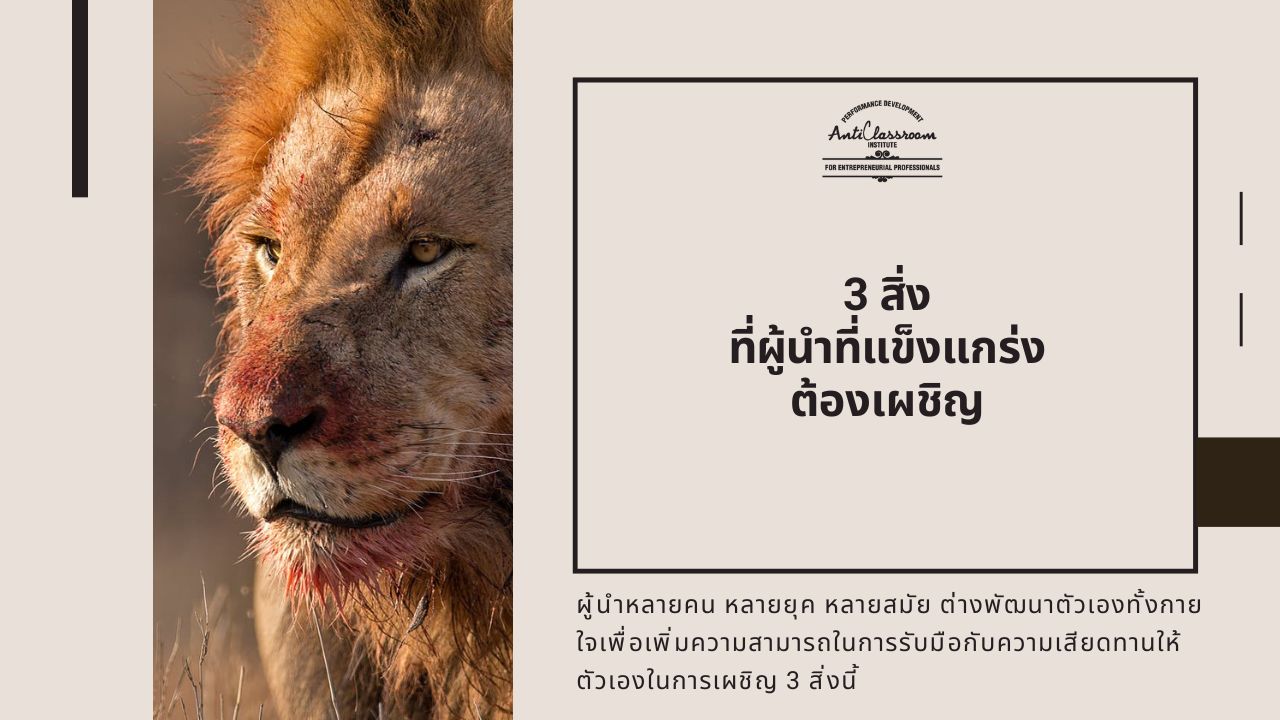 การเลือกทำสิ่งที่มีความหมายนั้นไม่เคยง่าย และมีแต่ผู้ที่ตัดสินใจเลือกแล้วเท่านั้นที่จะพร้อมเผชิญ แต่ก็เพราะรู้ว่าเบื้องหลังนั้นทำไปเพื่อใครและเพื่ออะไร จึงเป็นแรงผลักดันให้มนุษย์ที่ขึ้นชื่อว่าผู้นำหลายคน หลายยุค หลายสมัย ต่างพัฒนาตัวเองทั้งกายใจเพื่อเพิ่มความสามารถในการรับมือกับความเสียดทานให้ตัวเอง และ AntiClassroom เชื่อว่ามี 3 สิ่งที่เหมือน ๆ กันที่พวกเขาต้องเผชิญและมันช่วยหล่อหลอมให้พวกเขามีความแข็งแกร่งยิ่งขึ้น