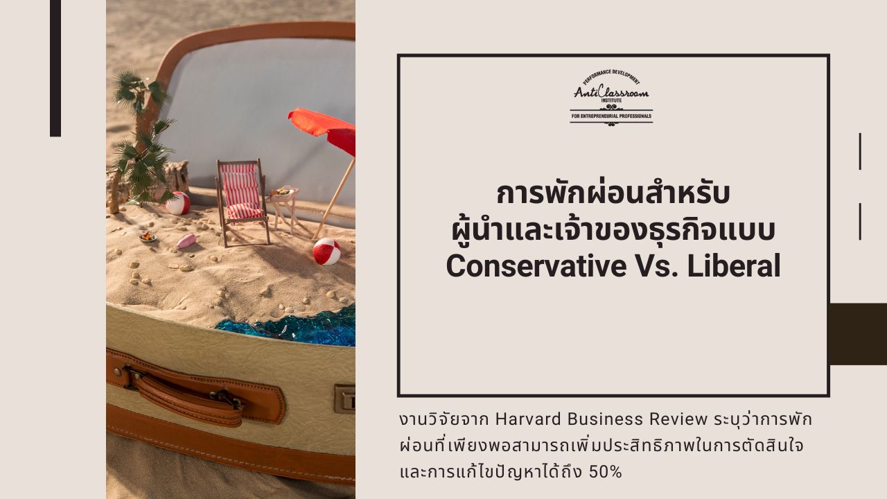 การเป็นผู้นำหรือเจ้าของธุรกิจนั้น ไม่เพียงแต่ต้องมีทักษะในการบริหารจัดการและการตัดสินใจที่ดีเท่านั้น แต่ยังต้องสามารถรักษาสมดุลระหว่างการทำงานและการพักผ่อนด้วย เพื่อให้สามารถทำงานได้อย่างมีประสิทธิภาพมากขึ้น เพราะการพักผ่อนที่มีคุณภาพเป็นปัจจัยสำคัญในการรักษาสมดุลนี้ บทความนี้จะสำรวจแนวทางการพักผ่อนที่เหมาะสมโดยแบ่งออกเป็นการพักผ่อนของผู้นำที่มีคุณลักษณะที่แตกต่างกัน 2 ประเภท ได้แก่ผู้นำแบบ Conservative และ Liberal