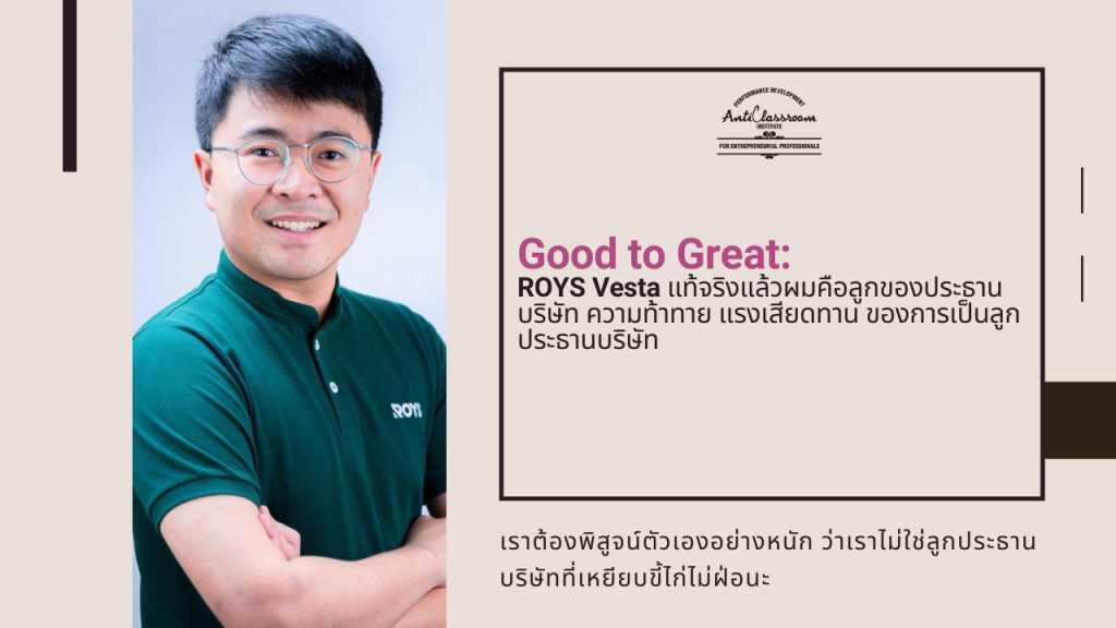 ขอบคุณคุณอ๋อง สำหรับการแบ่งปันเรื่องราวการทำงานผ่านมุมมองการเป็น “ลูกของประธานบริษัท” ที่ไม่เคยบอกเล่าที่ไหนมาก่อน ทำให้เราได้แง่คิด และตัวอย่างความเป็นผู้นำที่ดีค่ะ